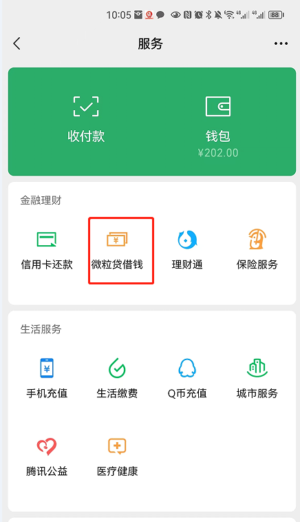 我是在微信【服務(wù)】找到“微粒貸借錢”入口的,(在手機QQ【我的QQ錢包】中