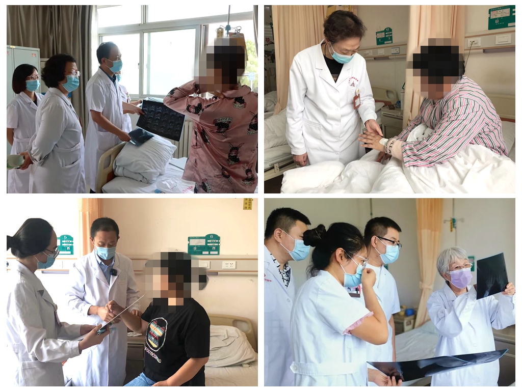 在等待檢查報(bào)告及會(huì)診的間歇,北京專家和我院專家們一起到病房與患者進(jìn)行面對(duì)面的交流,親自查看恢復(fù)情況,查看病歷報(bào)告,詢問患者感受及康復(fù)治療情況,對(duì)院內(nèi)的治療方案、用藥方案及康復(fù)治療方案表示肯定,對(duì)于部分病情不穩(wěn)定的患者,專家會(huì)根據(jù)個(gè)人以往的臨床經(jīng)驗(yàn),也給出了適當(dāng)?shù)闹委熣{(diào)整建議。