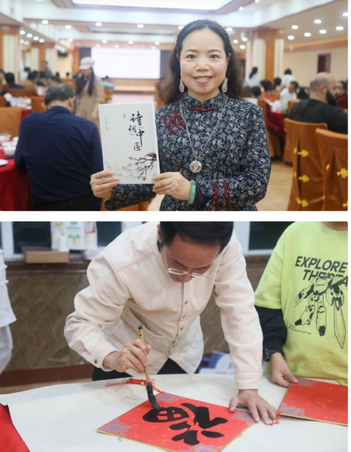 之后,科普文化雅集還為到場嘉賓和觀眾呈上了豐富多彩的活動(dòng),包括:名中醫(yī)陳根成、壽小云弟子黃劍鋒博士揮毫送“福”字;《花間物語》書籍作者知名撰稿人美月冷霜女士、《古琴音樂與中醫(yī)養(yǎng)生》書籍作者古琴家邊江紅女士等進(jìn)行簽名贈(zèng)送書籍活動(dòng);廣州中醫(yī)藥大學(xué)第三附屬醫(yī)院工會(huì)主 席陳克現(xiàn)場表演八段錦;科普文化活動(dòng)中還有茶道、各門派太極拳表演。