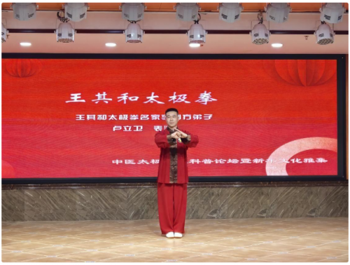 太極拳表演由楊、陳、武、王各派太極拳名家高手集體奉獻(xiàn),今年已至84歲高齡的楊式太極拳名家程良生師傅表演的傳統(tǒng)楊式太極拳依然勁力十足,楊式太極拳名家喬振興之子喬志路、陳式太極拳名家陳照森弟子梁炳權(quán)、武式太極拳名家翟維傳弟子王金祿、王其和太極拳傳人李劍方弟子盧立衛(wèi)的太極拳表演令在場觀眾大飽眼福,豐盛的小寒節(jié)氣養(yǎng)生晚餐也令大家大快朵頤,真可謂視覺、味覺齊滿足,養(yǎng)生、享受兩不誤。