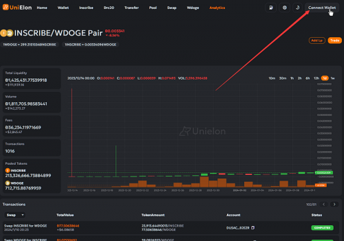 Inscribe購(gòu)買教程目前Inscribe 可以在Unielon平臺(tái)購(gòu)買,下面我就手把手教大家如何購(gòu)買Inscribe在電腦上,使用谷歌瀏覽器打開Unielon網(wǎng)站如下圖所示,點(diǎn)擊右上角Connect Wallet 連接錢包