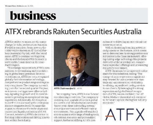在過去的一年里,知名金融科技經紀商ATFX憑借全球排名第四的業(yè)績實力以及一連串的重大收購行動而備受業(yè)內關注,并屢次成為各大媒體焦點。如今,榮譽時刻再度降臨。1月25日及26日,ATFX兩則品牌新聞強勢登陸全球知名媒體《日本時報》經濟與商業(yè)版面,引發(fā)行業(yè)矚目。這一顯著成就不僅是對我司品牌影響力及商業(yè)實踐的權威認可,更彰顯了我們在全球經濟舞臺上的卓越表現和杰出風采。