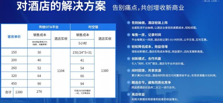 “酒店辛辛苦苦的經(jīng)營,到頭來卻是白忙活一場(chǎng),”時(shí)空宿聯(lián)合創(chuàng)始人韓證先生坦言,“正是因?yàn)檫@樣的想法不斷涌進(jìn),基于本身從事酒店行業(yè)多年,讓我們有了大膽的創(chuàng)新,我們希望把酒店的利潤最大化,同時(shí)也可以讓用戶有自主選擇權(quán)”